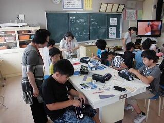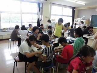 5年生が家庭科の授業で、フェルトを使って小物作りをしました。12名ものボランティアの方にお手伝いいただきました。本当にありがとうございます。
