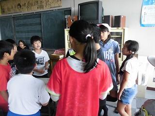 学習室の片付けが終わり、教室に戻る児童と、扇風機を移動する児童に別れました。