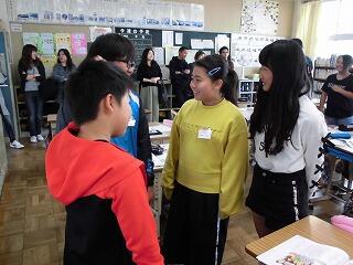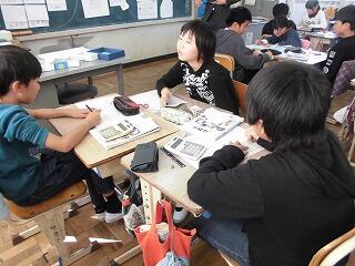 一人ずつ作品の発表をしていました。発表を聞いている児童は、「形がとてもかわいいですね。」「色使いを工夫していますね。」等、作品の感想をしっかり言っていました。挙手の仕方も上手です。