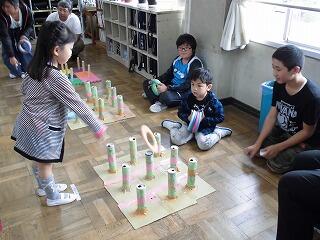 昼休みに、運動委員主催の体育教室が開かれました。牛乳パックブーメランを、より遠くに飛ばすにはどうしたらよいか、工夫して投げていました。子どもたちは、投げる力が弱い傾向にあります。楽しみながら投力が付くといいですね。休日に、親子で楽しむのも良いのではないでしょうか。