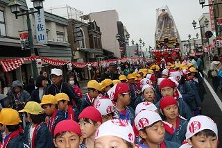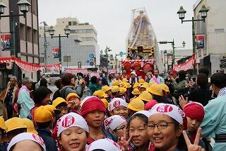 栃木秋祭りの前日に、栃木市内の小学校3・4年生が、山車をひく経験をさせていただきました。赤麻小は、室町の方々にお世話になり、室町の法被を着て、手ぬぐいをかけ、勇ましく山車(桃太郎)を引いていました。初めて山車を見る児童もおり、大興奮でした。手ぬぐいと木札をいただき、ご満悦の3・4年生でした。