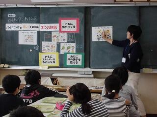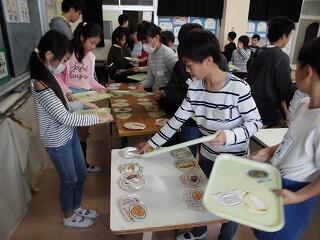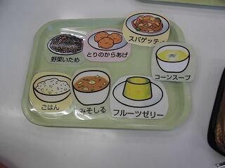 12月に行く宿泊学習の食事はバイキングです。そこで、給食センターの栄養士さんを講師に「バイキングで何をたべたら良いか」について、ご指導をいただきました。実際にバイキング会場の設定をして、自分で食べ物(絵です)を選びました。その後、バイキングでの食べ物の選び方を学習して、再度食べ物を選ぶ練習をしました。写真の左側は、学習の前、右側は学習後です。海浜自然の家のバイキングの食事を美味しく、正しく食べてきてください。
