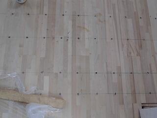 体育館が大分完成してきました。今日は、床の釘打ちと外壁の作業について、掲載します。
