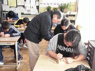 今年も6年生が落款作りに挑戦しました。県内の技能士さんが6名来校し、丁寧に指導してくださいました。6年生は、予め、篆刻文字を書いていただいた石を彫る作業を、一心不乱に取り組んでいました。自分の落款を自分でつくる、とても貴重な体験ですね。
