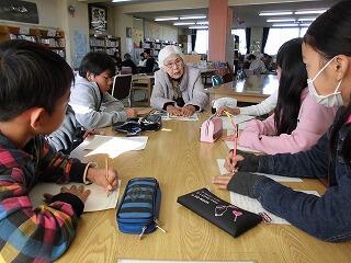 赤麻の畑に爆弾が落ちたこと、東京から焼け出された方々が疎開にいらしたこと、当時の子供の服装や食生活について等、教科書では分からなかった実際の戦争中の生活について学びました。「戦争はダメだよね」という講師の方の言葉が心にしみました。