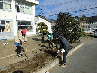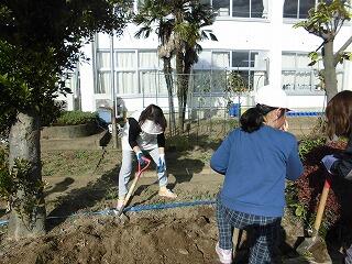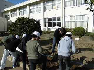 さわやかな秋空のもと、一人一鉢運動に向けて花壇整備と土作りを行いました。整備委員会とともに3人のボランティアの方にお手伝いいただき作業しました。ボランティアの皆様、いつもありがとうございます。