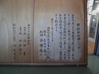 また、校歌の額の裏側には、昭和60年度の卒業生と先生方の、後輩への熱い想いが書かれていました。感動です!!