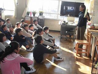 今年は、赤麻が生んだ大横綱「栃木山」が横綱に昇進して丁度100年にあたります。赤麻の大先輩を知ろうと、5年生が総合的な学習の時間に取り組むことになりました。第1回目の今日は栃木の語り部、間中一代さんに栃木山の言い伝えを語ってもらいました。こどもたちは真剣に語りに耳を傾けていました。