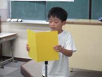 代表児童の作文発表では、1年生と5年生の代表が、夏休みの思い出や2学期に頑張りたいことなどを、堂々と発表し立派でした。