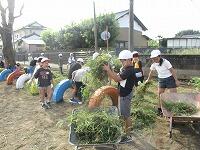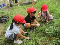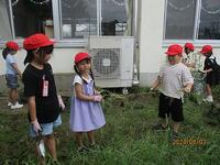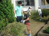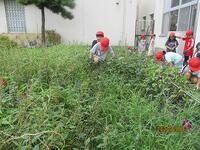 4時間目の生活科の時間に、1年生が花壇の草むしりをしてくれました!