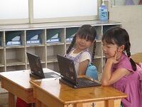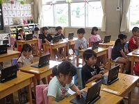 パソコンクラブでは、好きなイラストなどで下敷きを作ったり、プログラミングのゲームを楽しんだりしていました。
