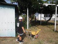 夏休みの間に、花壇の雑草が子供たちの腰の高さまで伸びました。