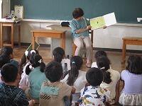 迫力と演技力のある読み聞かせに、子供たちは、おはなしに引き込まれ、じっと紙芝居を見ていました。