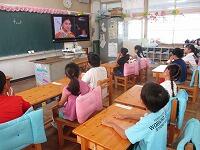 7月9日6年生外国語の授業、オンラインで繋がりました!