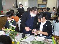 本日3校時、地域ボランティアの皆様を講師にお迎えし、6年生が総合的な学習の時間で、日本の伝統文化を学ぶ学習の一環として、生け花体験をさせていただきました。