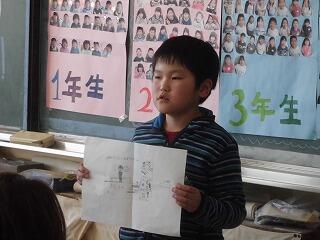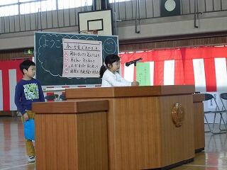 この1年間をふりかえって、代表児童が作文を発表しました。
