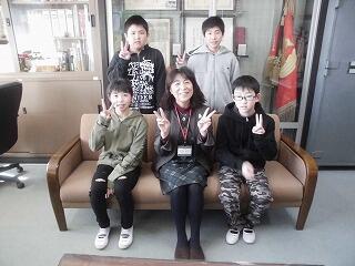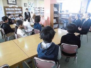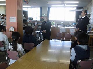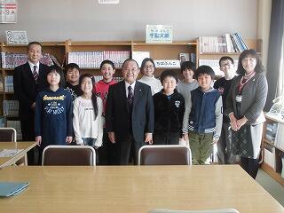 本校の卒業生で、以前から、本校の読書活動を支援してくださっている千葉利明さんが今年も来校してくださいました。支援活動を企画してくださっている清水文義さんと共に埼玉の方からお越しくださいました。児童を代表して、図書委員の子供たちが、お礼のことばを述べ、最後に記念撮影をしました。