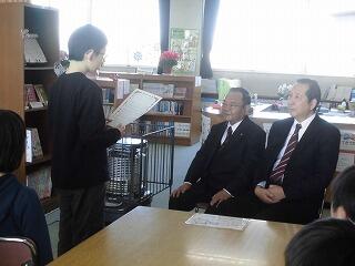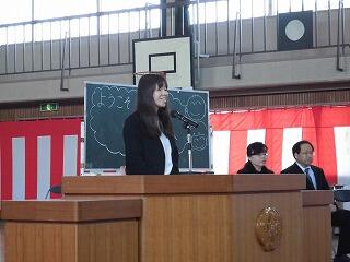 日本語と英語で挨拶をしてもらいました。(英語は、英語の得意な酒井成彦先生が通訳しました。)