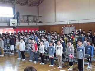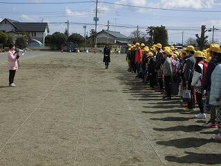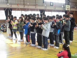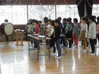 今までは、各クラスで別れのことばを練習していましたが、今日から、1~5年生が集まっての練習になりました。各クラスで一生懸命練習してきたようで、最初にしては、とても上手にできました。