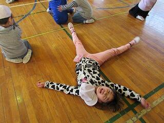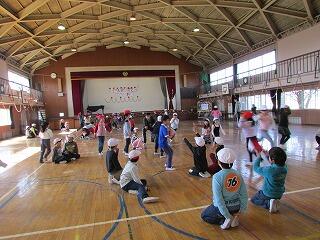 今日の昼休み、今年度最後の体育教室を行いました。「しましま物語」という鬼ごっこを行いました。ルールを簡単に説明すると、二人組の島(安全地帯)がたくさんあり、座っています。それ以外に鬼と逃げる人が5~6人程度います。鬼は逃げる人しか捕まえられません。逃げる人を捕まえたら鬼と逃げる人がチェンジします。逃げる人は危なくなったら、島に入る(二人にどちらかの隣に座る)ことができます。すると、座った反対側の人が逃げる人に替わります。