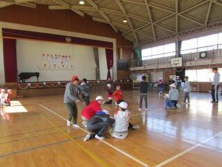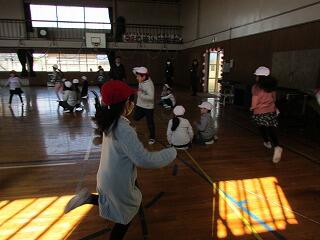 その後、ボランティアの方々と子供たちで、一緒に「じゃんけん列車」で遊びました。