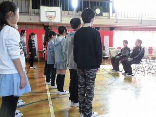 朝のあかまっ子タイムに卒業生の入退場の練習をしました。拍手のタイミング、卒業生の歩き方、感覚、見送りの5年生の演奏などいろいろなポイントを確認しました。