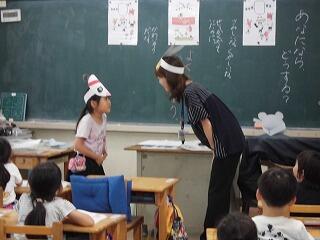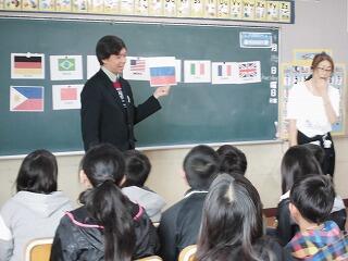 ロバート先生は、授業はもちろん、普段から英語に慣れ親しんでもらおうと、階段に動物の絵と単語を書いたカードを貼ったり、子供たちが、英語に興味をもつようなカードをたくさん自作してくれたりしていただきました。また、子供たちとたくさんコミュニケーションがとれるように、日本語の勉強にも熱心に取り組み、給食や休み時間も英語や日本語でたくさん会話をしていました。
