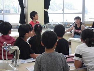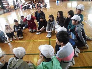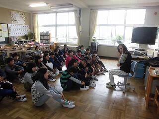 本日4校時、6年生の外国語活動の時間に、藤一中の篠先生が来校し、教えていただきました。英語で「どんな部活に入りたいか」また、その答え方を学びました。それを使って、子ども同士で、互いに英語で質問したり答えたりする練習をしました。
