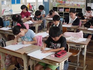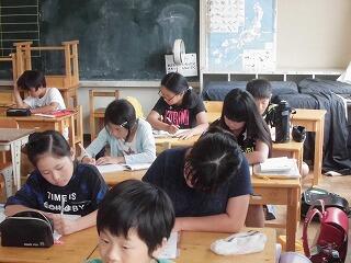 今年度の放課後教室が、本日から始まりました。4・5・6年生の希望者が放課後の45分間行います。講師の先生は、昨年度に続き、地域ボランティアの毛塚ケイ子先生と学校支援員の酒井麻衣先生です。宿題を終わらせ、自分のペースで国語や算数のプリント学習を行います。わからないところは、先生方からアドバイスをもらいます。こどもたちは真剣に取り組んでいました。