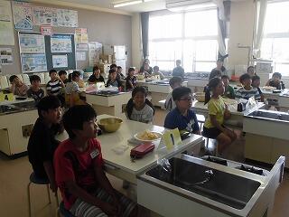 カルビースナックスクールが4年生を対象に行われました。毎日のおやつは、200㎉、ポテトチップス35グラムが目安だそうです。夕飯の2時間前までに食べるのがベストのようです。4年生は、問題を出されるとしっかり考えて元気よく答えていました。