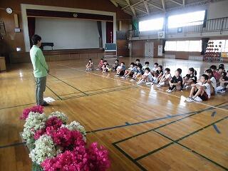 今年もとちぎ花センターよりきれいな花をいただきました。その贈呈式が昼休みに体育館で行われました。花センターの方から花の説明と、水やりについてのおはなしを聞きました。こどもたちは真剣に話を聞いていました。今回の花は「ブーゲンビリア」と「ハイビスカス」です。大切に育てます。