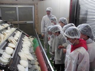 3年生が社会科の「工場ではたらく人びとの仕事」の学習として、金吾堂せんべいの見学に行きました。せんべいができるまでの生産工程や、おいしく安全につくるための工夫や苦労・努力などを学んできました。