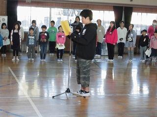 まず、一人一人作った人権標語を代表児童が発表しました。