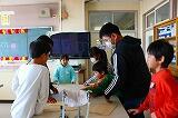 11月27日(金)、4年生が総合的な学習「みんなにやさしく」の学習で車椅子体験、高齢者疑似体験を行いました。体の不自由な方や高齢者の思いに気づいたり、介護の仕方を知ったりすることが目標です。車椅子体験は、お借りした5台の車椅子を使って2人組でジグザグなコースやでこぼこなコースを実際に乗ったり、押したりしながら体の不自由な方の気持ちを考えました。高齢者疑似体験では、軍手をはめた手で辞書を引く活動を通して、高齢者の気持ちを考えました。子ども達の感想からは、実際にやってみて初めて気づいたことが多かったことがうかがえました。貴重な体験学習ができました。
