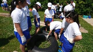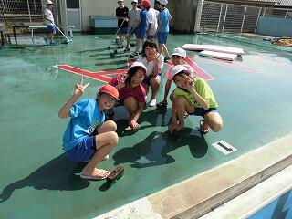 本日5~6時間目に、プール清掃・除草が行われました。1年生は、校庭の石拾い、2年生3年生4年生は石拾いと草取り、5年生は砂運びや草取り等を行いました。6年生は、プールの掃除でした。暑い中、各学年とも一生懸命学校の環境整備に頑張ってくれました。写真は、6年生のプール清掃の様子です。皆さん、ご苦労様でした。ありがとう。