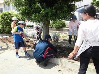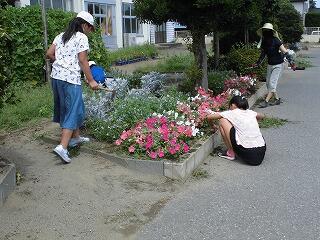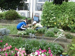 今日の昼休み、環境委員会が中心となって、2回目の花壇草むしりをしました。なかなか草の伸びる勢いに除草が追いつきませんが、暑い中がんばっています。
