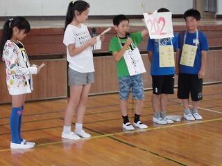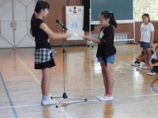 今日のあかまっ子タイムに、表彰を行いました。すいせん図書読破賞、多読賞、男女共同参画標語、歯と口の健康週間(ポスター・作文・標語)、よい歯の児童を表彰しました。
