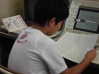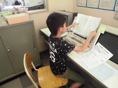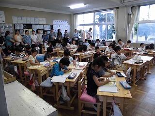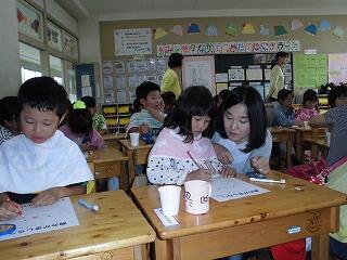 3年生にとって、今年から初めての習字です。準備の仕方や片付け方など多くのボランティアの方に支援していただいています。