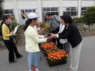 昨年度に引き続き、今年度も「とちぎ花センター」より花を寄贈してもらえることになりました。2ヶ月に一度、各教室や校長室、職員室、保健室、図書室玄関に飾る花をいただくことになりました。