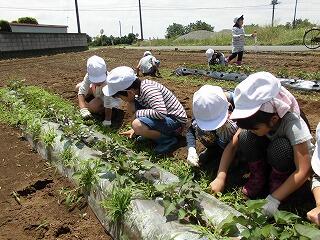 また、地主の亀田さんが、事前に畝のまわりを機械で耕していてくださったので、とても助かりました。暑い中ありがとうございました。