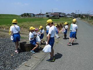 今日の9時から、1・2年生がサツマイモ畑の草取りをしました。地域ボランティアの方や保護者の方11名にお手伝いいただき、きれいに草を取ることができました。