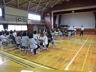 授業参観後、研修部主催の「PTA教育講演会」を行いました。この講演会は、市で行っている「ハッピー子育て講座」を兼ねています。