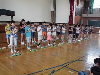 今日のあかまっ子タイムに、3年生の表現活動を行いました。最初は、「ドレミの歌」に合わせた「ドレミ体操」を踊りました。音の高さに合わせて動きが変わり、とても楽しそうでした。次にけんばんハーモニカで「きらきらおひさま」を演奏しました。最後に今年から習い始めたリコーダーで、「ゆかいなまきば」を演奏しました。
