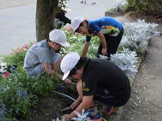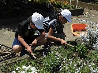美しい花々が色とりどりに咲いている本校の花壇。しかし、この季節は、草との戦いです。本日、昼休みに、環境委員の児童と担当の先生で、花壇の草取りをしました。約30分、草取りに励みましたが、なかなか草との戦いは終止符がつきません。来週も頑張ります!!