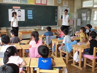 2年生の学級活動の時間に、「体のプライベートゾーンを知ろう」という内容で、養護教諭の小林桃子先生に指導してもらいました。水泳を行っている時期ですが、水着で隠しているところは、プライベートゾーンと言って、「見ない」「見せない」「触らない」「触らせない」「自分でもお風呂で洗うときを除いて、見せない触らない」と言うことを学びました。