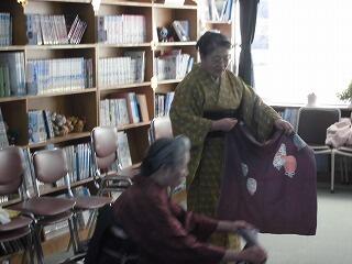 第2回目の和装礼法指導が、図書室で行われました。着物の着付けや座布団への座り方、風呂敷の包み方を教えていただきました。