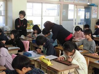 4年生がそろばん学習をしました。ボランティアさん達にもご指導いただき、数字をそろばんの珠で表す方法を学びました。その後、足し算をやりました。慣れないそろばんを扱うことは難しかったようです。ボランティアさん、いつもご指導ありがとうございます。