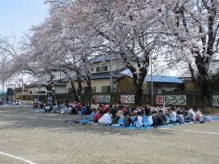 桜の下で給食を食べたよ