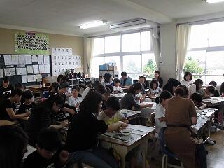 小中一貫教育の一環として、藤岡一中の美術担当の石塚先生に本校の6年生がポスターの描き方についてのご指導をいただきました。各小学校の先生方にも指導法の研修として参加していただきました。構図について、色の塗り方に咲いて等、基本的な事をご指導いただきました。90分の講座では、作品が完成しませんでしたので、家で丁寧に仕上げてもらいたいと思います。