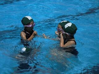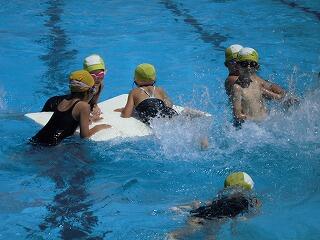パドックの使い方、カヌーの乗り方等を練習した後、プールでカヌーを漕ぎました。子どもたちはすぐに上手になって、スイスイ乗っていました。
